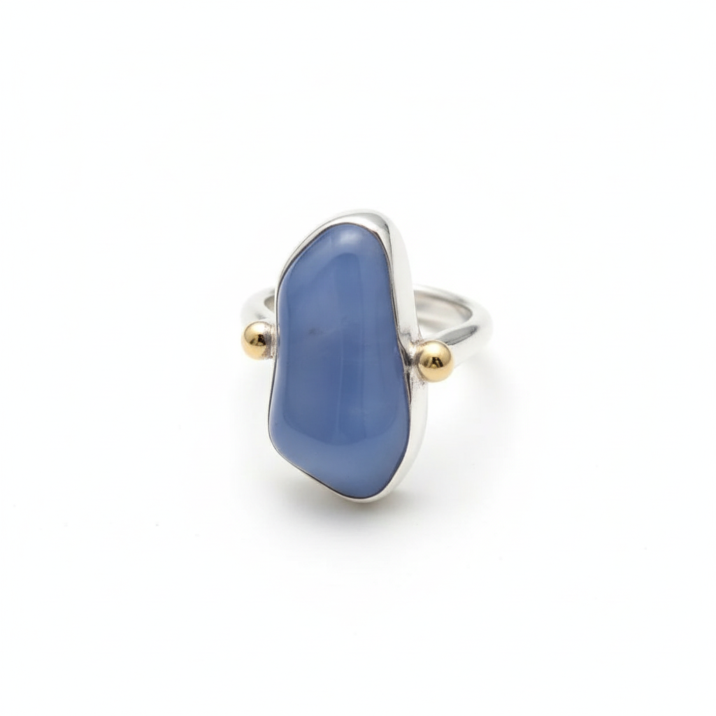 Δαχτυλίδι από ασήμι 925 με λεπτή κοπή χαλκηδόνιου (B-64)